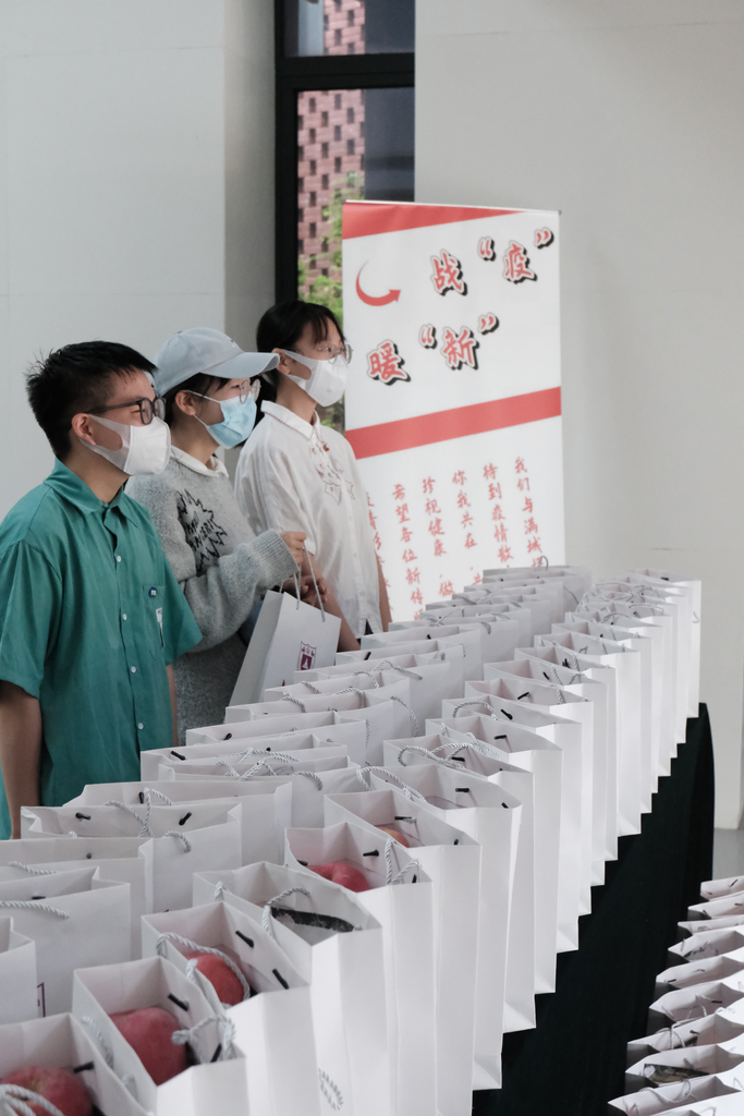 组织开展战“疫”暖“新”慰问活动,为每一位在校坚持同心战疫的同学送上精心准备的慰问礼物,鼓励在校同学珍爱健康、做好防护、同心战疫、共克时艰。