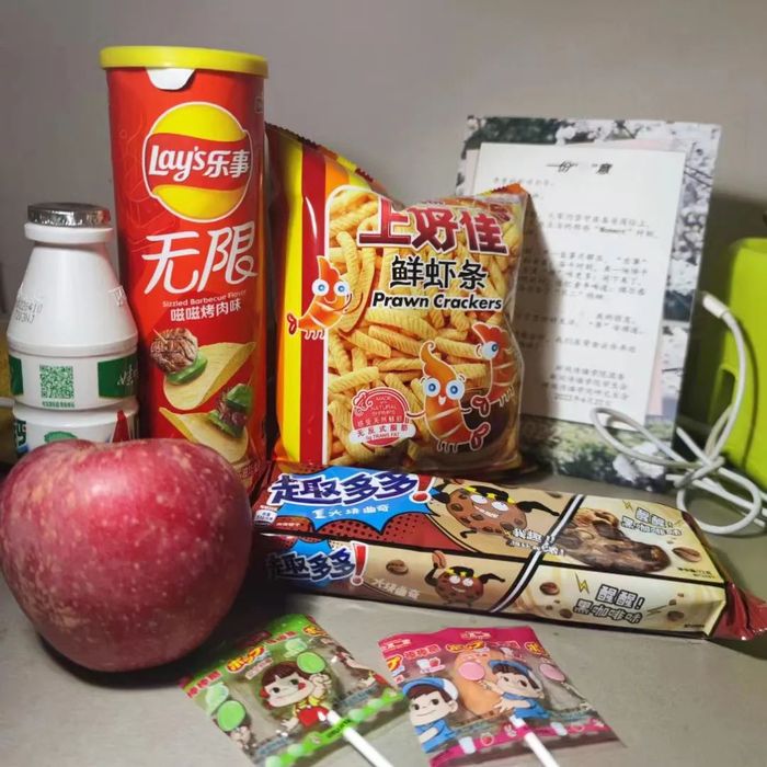 非常感谢学院组织的这次零食发放,让我感觉到“集体的温暖”,这不是一个空泛的词,而是新传人实实在在地作为一个共同体在甘苦与共、互相勉励。这个活动如同一个媒介把我们联系起来,让我们知道我们在互相关心彼此的境遇和感受;零食是一个很日常可爱的媒介,用非常细小的东西就可以照亮一整片美好的心情。我还注意到随赠的卡片上用“乐事”“尚好”“趣多”等等双关语,可以体会到组织者的精心安排和诚挚情感,这种细节同样以小见大,让我有会心一笑的感动。