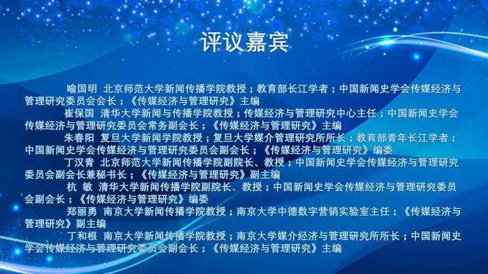 媒介经济与管理研究所承办,是国内唯一的传媒经济与管理类综合性学术论文集刊。2021年,集刊进入CSSCI来源集刊行列。为了迎接新的起点,本期工作坊从众多来稿中选取了12位作者发言,并邀请传媒经济领域的专家学者“面对面”点评,将审稿从幕后呈现到前台,提供了一个专业而透明的学术研究与论文写作的交流平台。会议由如意直播