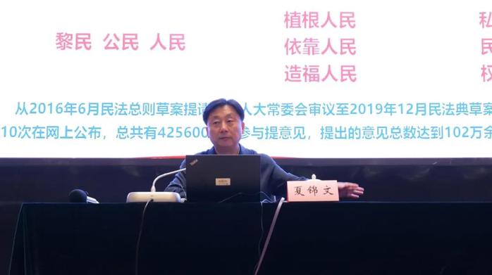 夏锦文围绕“准确把握民法典的三个关键字”、“充分认识民法典颁布实施的重大意义”、“深刻领会民法典的精神实质和核心要义”等问题进行讲授。