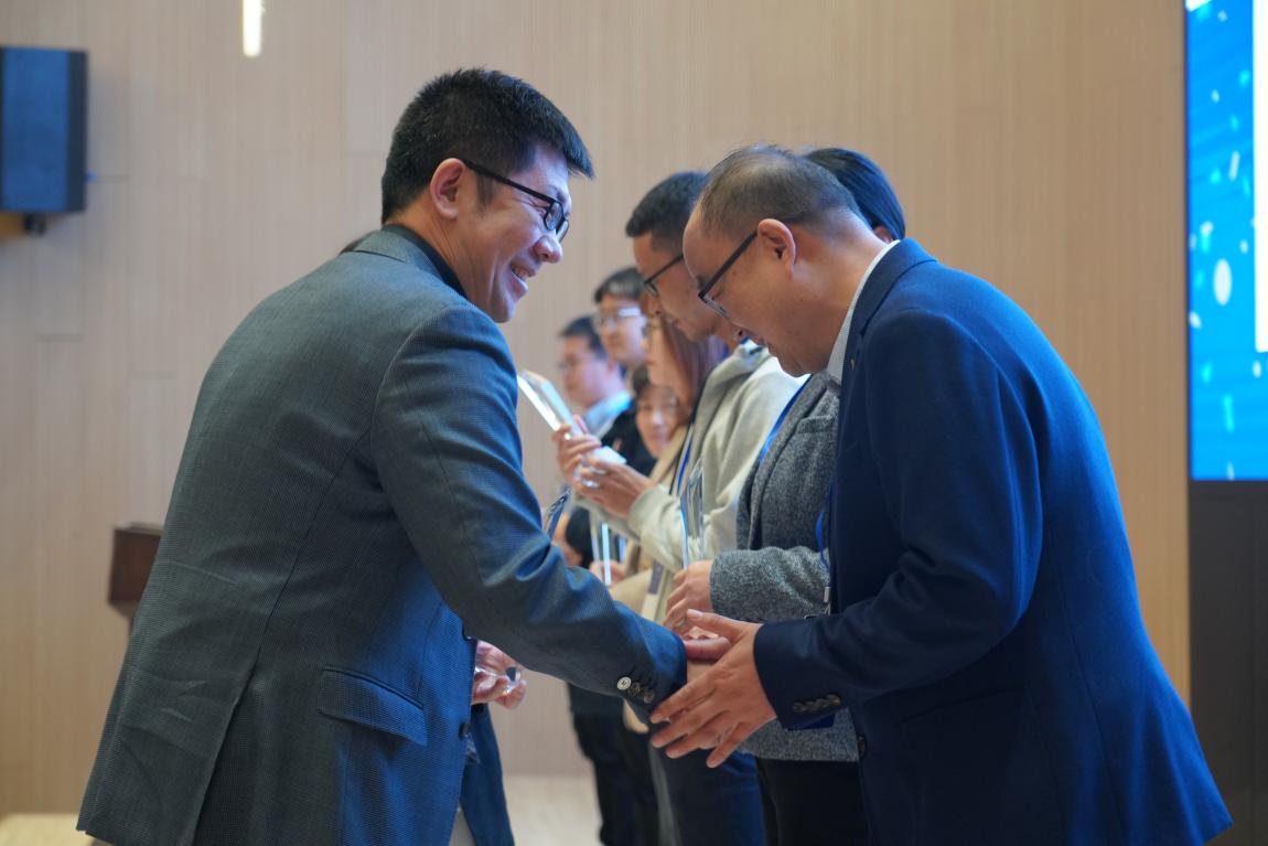 致辞结束后,颁奖环节正式开始,优秀校媒入围奖、十大优秀校园媒体奖、优秀指导老师奖、优秀作品奖依次颁发,各位领导和嘉宾为获奖代表颁奖,并在台上合影留念。