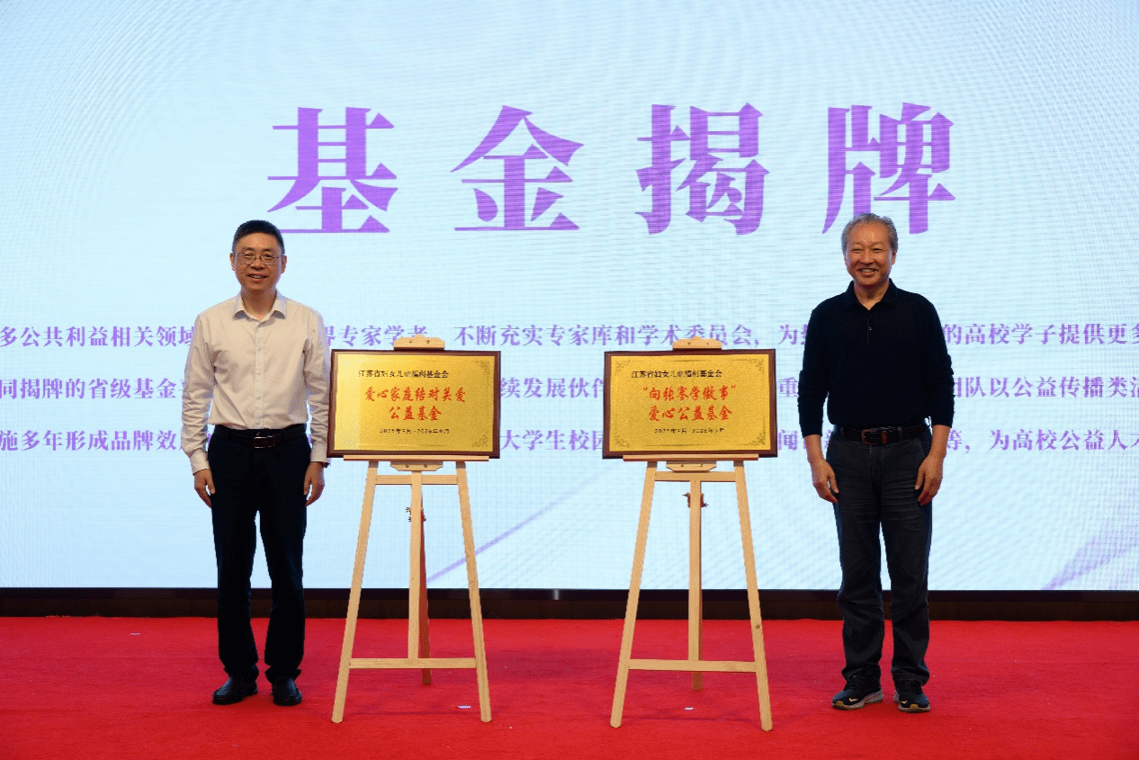 活动中,赵鹏、陆延青为多方共同培育的“爱心家庭结对关爱”公益基金、“向张謇学做事”两支省级爱心公益基金揭牌,并进行了江苏省高校公益基地项目专家暨全球公益传播研究中心学术委员会成员聘任仪式。