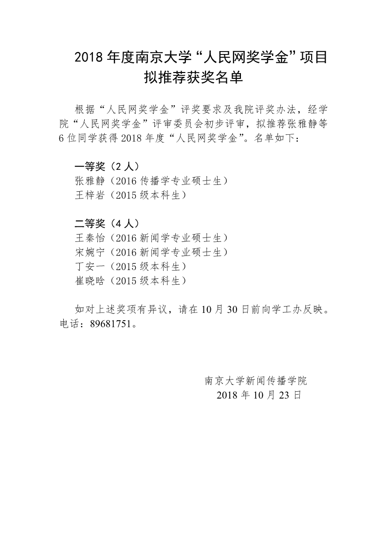 2018年度如意直播 "人民网奖学金"项目拟推荐获奖名单