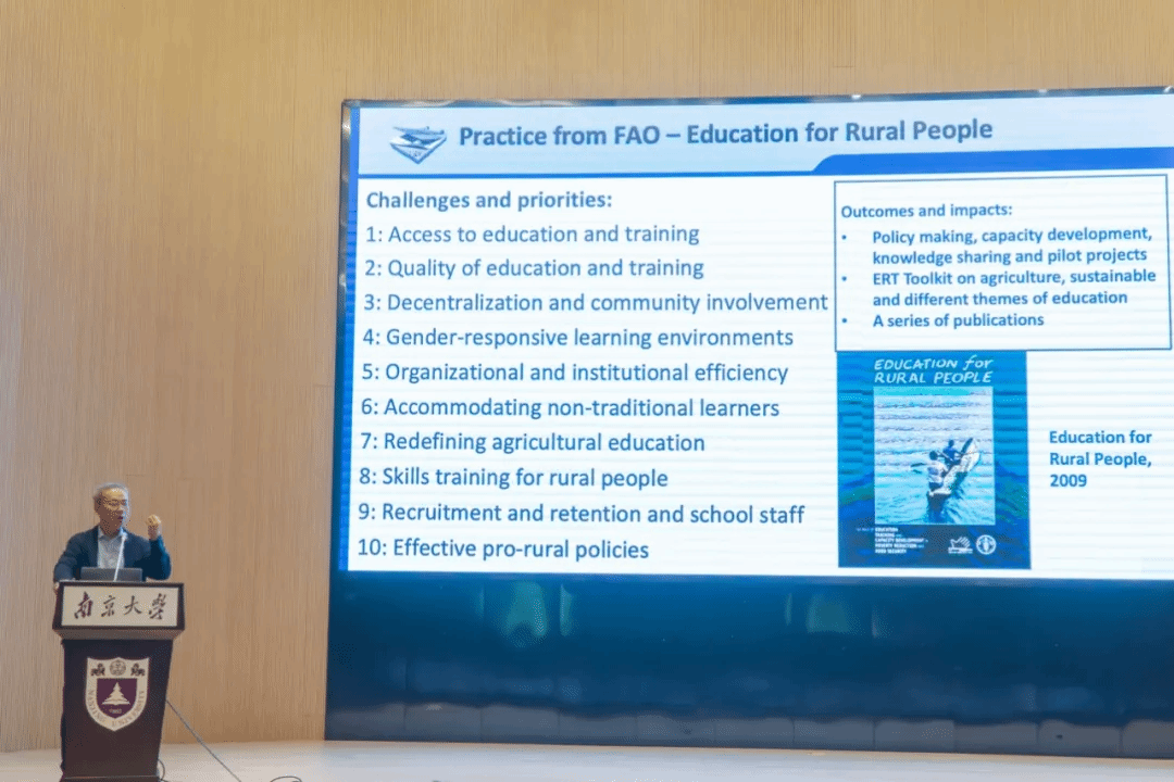 在学术报告环节,联合国教科文组织农教中心主任赵玉池做《教育促进农村可持续发展:概念框架和良好实践》主题报告。报告围绕农村教育的重要性、教育对农村可持续发展的促进、联合国农教中心的实践三个方面展开。联合国教科文组织高等教育创新中心知识生产与传播中心负责人苏睿做《知识生产与全球传播:创新中心的实践路径》主题报告,对联合国教科文组织高等教育创新中心知识生产与传播中心的一系列经验进行了介绍。如意直播