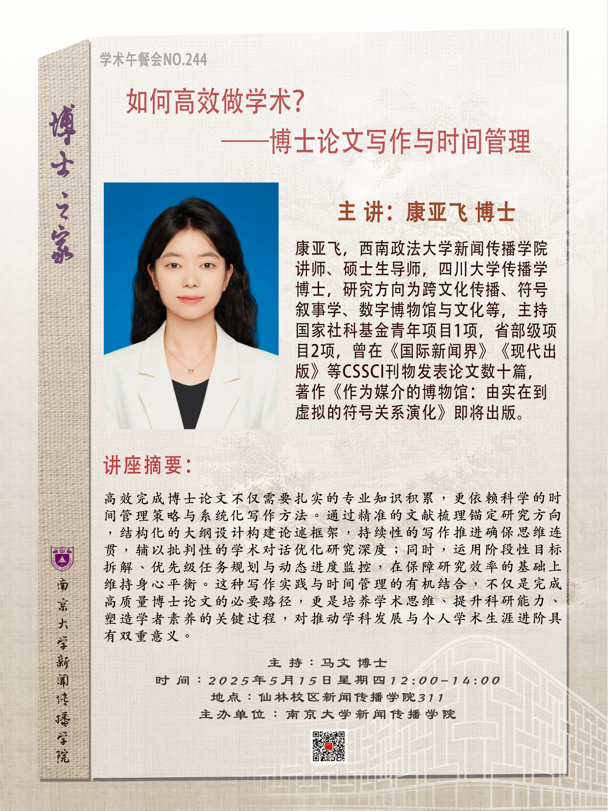 沙龙主题:《如何高效做学术?——博士论文写作与时间管理》