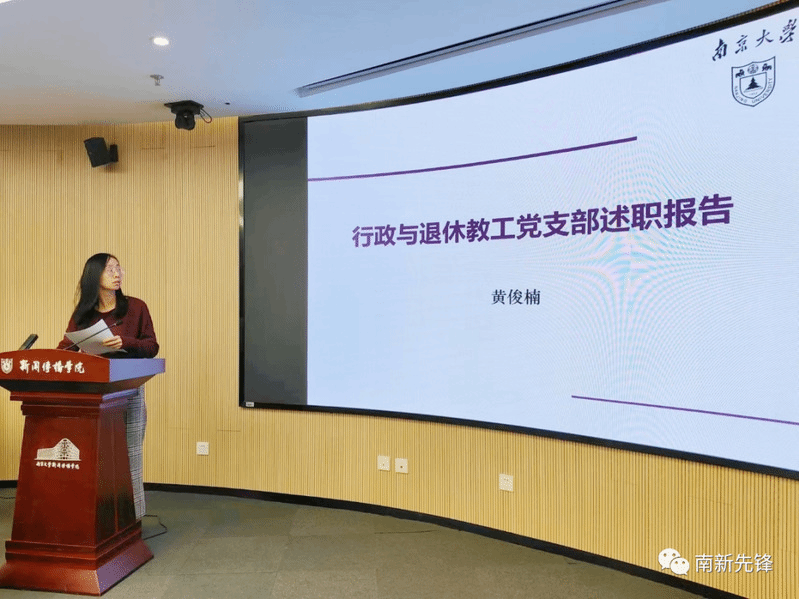 专任教师党支部书记袁光锋和行政与退休教职工党支部书记黄俊楠分别作述职报告。袁光锋同志在报告中重点介绍了支部在党员表彰、主题教育相关学习活动开展等方面的工作,主要包括专家党课学习与高淳西舍“红色堡垒”、红色珍档展览等参观学习。