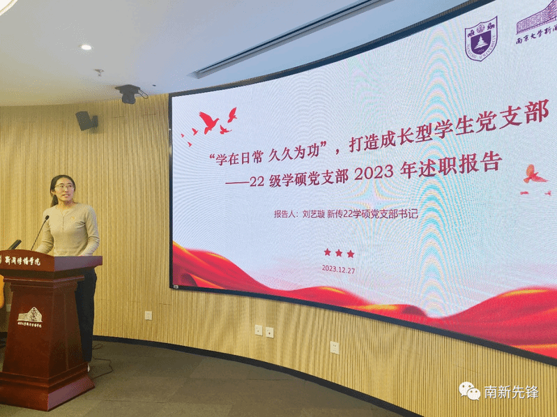 2022级学硕党支部书记刘艺璇以“成长型党支部”作为支部年度工作定位,展示了支部在寻求“学在日常”建设目标的过程中,以党员发展管理、理论学习活动等为抓手进行的各项工作。