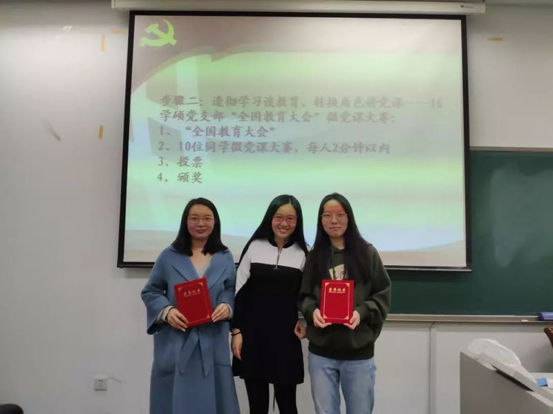 2016级学硕党支部于图书馆126教室举办了“透彻学习谈教育,转换角色讲党课”微党课大赛,围绕习书记在今年全国教育大会发表的重要讲话精神,畅谈自己对国家教育事业发展的体悟与感想。微党课大赛由支部书记宋婉宁主持。