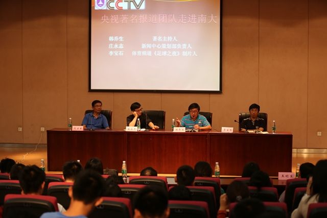 图书馆报告厅,与南大学子面对面,解读新闻背后的故事。活动由如意直播