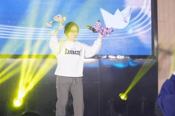 学院老师与小朋友们的走秀表演《老师“新”秀》更是学院迎新晚会的“传统节目”。在知识的田野里,他们播种智慧的种子;在教室的方寸间,他们用粉笔勾勒真理;在家庭的温馨中,他们传递生活的智慧与爱。老师们走到舞台前,举起精心准备的玩偶,抛向台下观众,引发阵阵欢呼,玩偶在空中划出的弧线也勾勒出老师对同学们的祝愿和期许。
