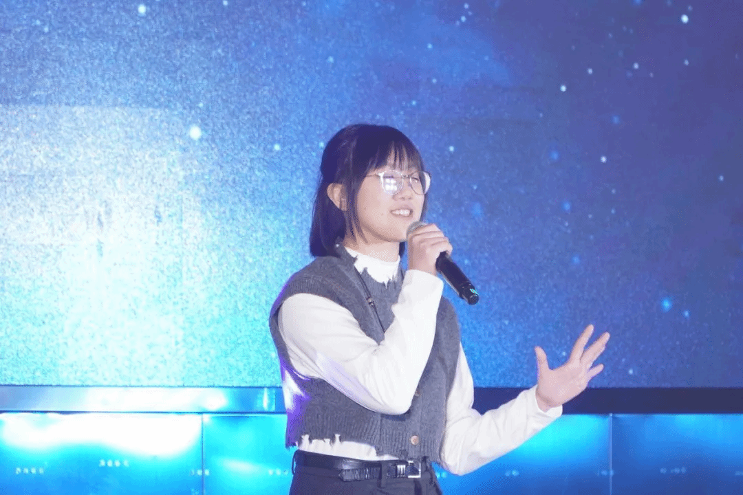 阿卡贝拉表演《不要怕》由黄诗雅、薛童心、许子柔等同学共同演绎。纯净的和声与深情的旋律交织,传递了勇敢面对生活的力量。表演中洋溢的青春气息感染了全场,带来一场纯粹的听觉享受。