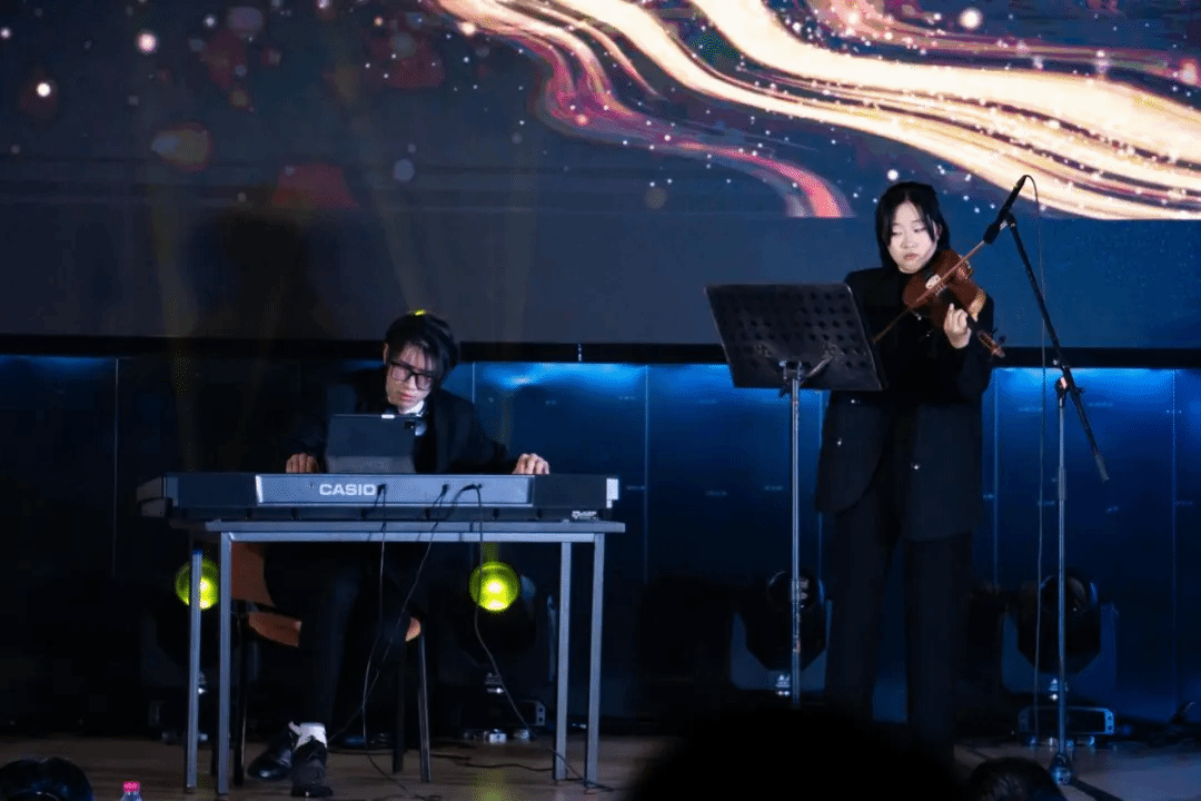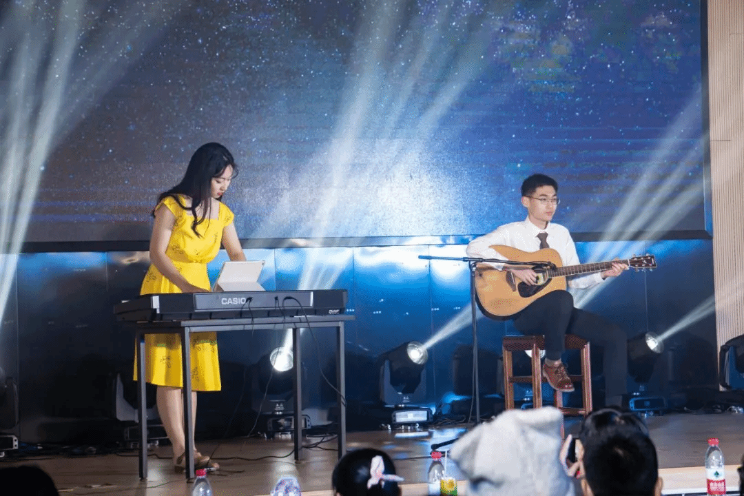 张含融与范竞泽的钢琴与吉他合奏《City of Stars》为晚会增添了一抹浪漫的色彩。琴声与弦音交织,勾勒出一幅星空下的画卷,音乐的魅力将气氛带入梦幻的艺术世界。