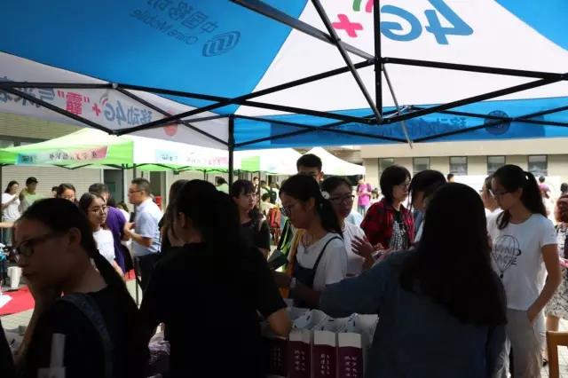 志愿者引领新生领取新生福袋