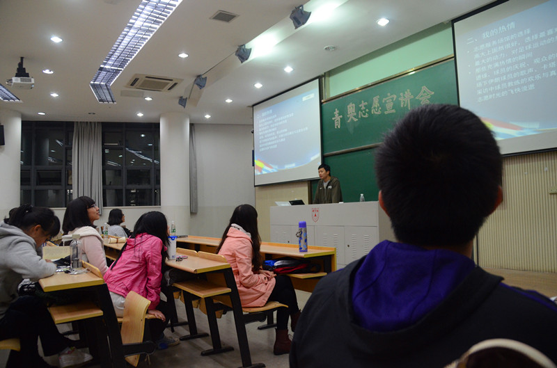 本次宣讲会以2014年南京青奥会的举办为契机,邀请校内刚刚参加过2013年南京亚青会的优秀志愿者为同学们交流他们的宝贵经验与体会,(在此特别鸣谢安怡然、卢远航、缪 舒瑾三位同学在百忙之中冒雨前来为同学们分享亚青会志愿者经验!!!)同时为大一的同学们知道青奥会志愿者报名的具体步骤和注意事项。