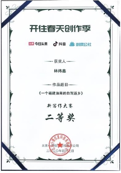 获奖证书和作品链接://mp.weixin.qq.com/s/gpK_xdrbMunFQZWn_d1xJw