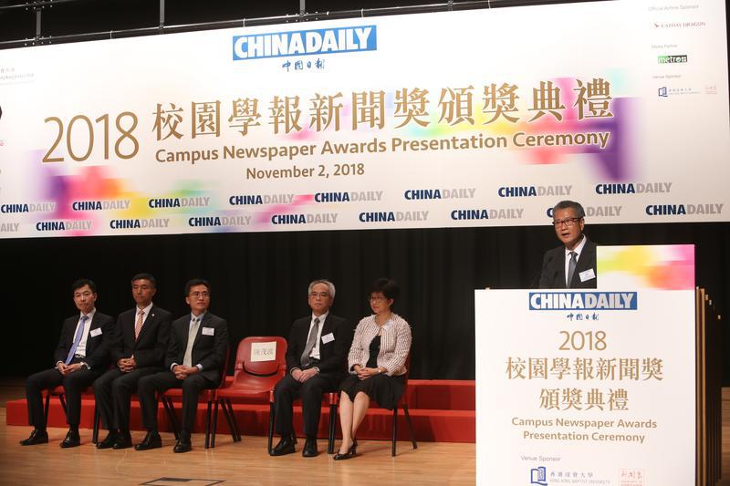 “记者工作对社会作用举足轻重,‘今天的新闻就是明天的历史’”,香港财政司长陈茂波在致辞中表示,在资讯泛滥、传统媒体衰落的时代,记者和媒体仍占据不可取替的地位,他们需要通过客观公正、不偏不倚的报道,满足受众对可靠、有公信力消息的需求。因此,记者不只是做一支录音笔,必须具备独立思考、研究、发问的能力和良好的讲故事技巧,让受众深入浅出了解复杂而重要的社会议题。他希望获奖学生毕业后不管走向什么岗位,依然能继续抱持关怀社会的初心。