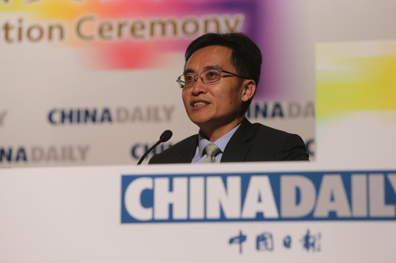 中国日报编委兼亚太分社社长周立在颁奖典礼上发表讲话。(中国日报记者 邓永安摄)