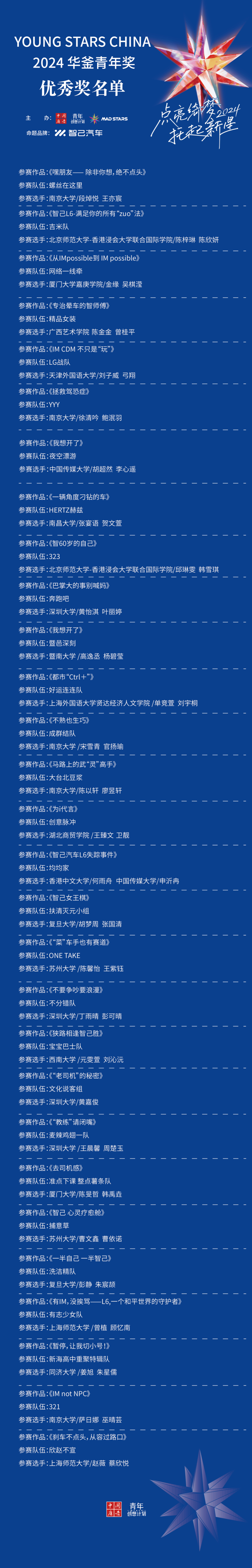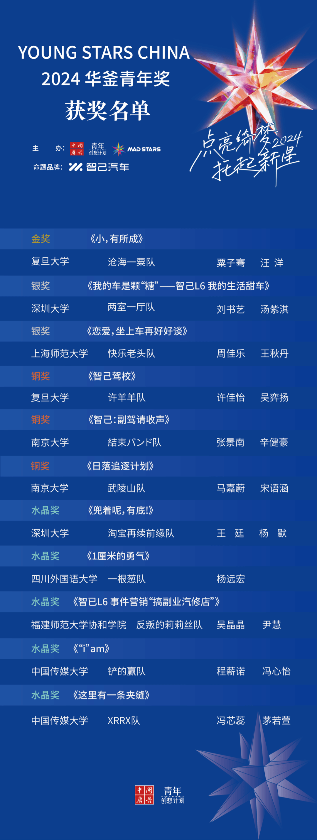 热爱谱写青春序曲,奋斗点亮未来征途。Young Stars China 2024华釜青年奖至此落下帷幕,但这段旅程中收获的历练、情谊与感动将伴随每一位青年学子走向更广阔的明天。