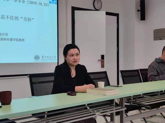 黄月琴教授,讲座主题为《行动传播研究:忍不住的“关怀”》。胡翼青教授主持了本次讲座,并向黄月琴老师赠送了第一至第四季博士之家学术午餐会文集。来自院内外的众多师生聆听了此次讲座。