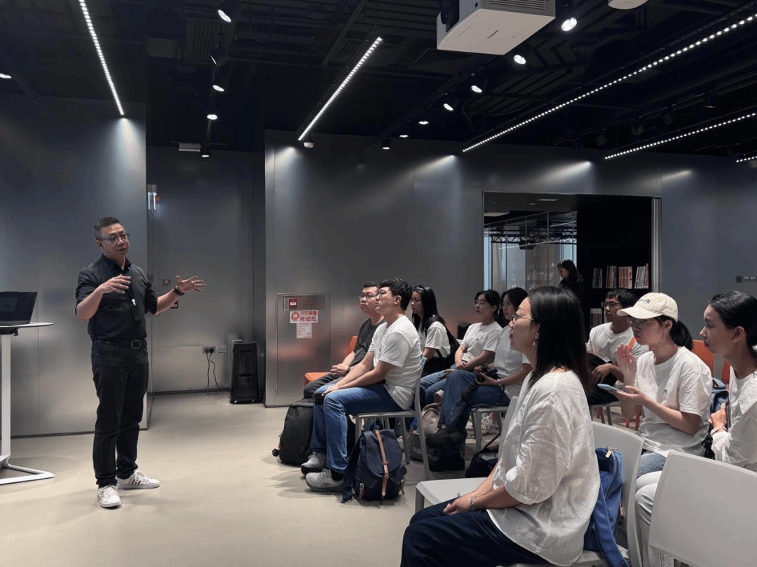 在香港深水埗,团队于8月19日参访香港设计中心(HKDC)。总监林伟强博士与项目统筹朱嘉怡介绍了HKDC在设计产业平台、人才扶持及大湾区融合中的布局,并重点讲解设计营商周和DFA设计奖等项目。参观“匠艺交织”展览时,队员们体验了AI与全息技术赋能的创新实践。